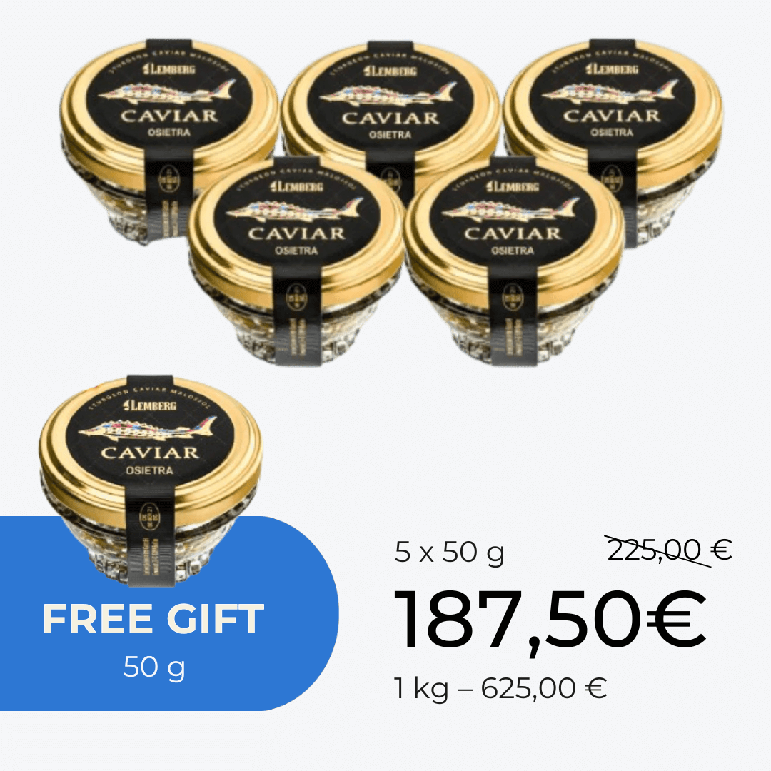 Lemberg предлагает широкий выбор настоящей осетровой икры. Икра белуги, самая известная в мире, остаётся невероятно популярной — гурманы ценят её за изысканный ореховый вкус и крупные зерна.